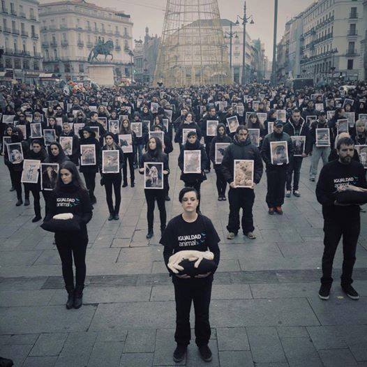 More than 500 people have gathered in Madrid to protest the violence committed against animals every day in the so-called livestock industry, and to express sympathy and solidarity with all sentient beings.