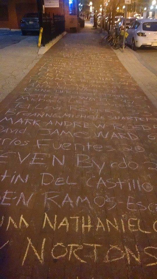 Last week, an activist in Baltimore known only as “April”, began writing names of victims of police brutality along the sidewalk. She began with victims killed on January 1st of 2013 and wrote every name that was recorded until the present day. Names stretched from Penn Station to a George Washington monument in the middle of the city, which is nearly a mile in distance. Wow.