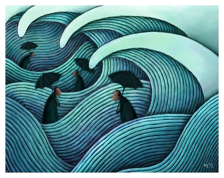 “I crave the ones who’ve seen confusion and known struggle; who have pulled themselves up from the shackles of heartache and strife, disappointment and darkness, exhaustion and drain and have risen with a heart as open and unwaveringly wide as the ocean itself. Give me those people. The brave, the vulnerable, the wise, the ones who care for a world, and how to better it along with themselves. To know their ability in making waves, in shifting patterns with tides and in creating change. Let us become that open ocean. And make it rise.” ~Victoria Erickson Posted on August 20, 2015 by underthebluedoor Posted in Art, General, Quotes Leave a comment Art by Pete Revonkorpi